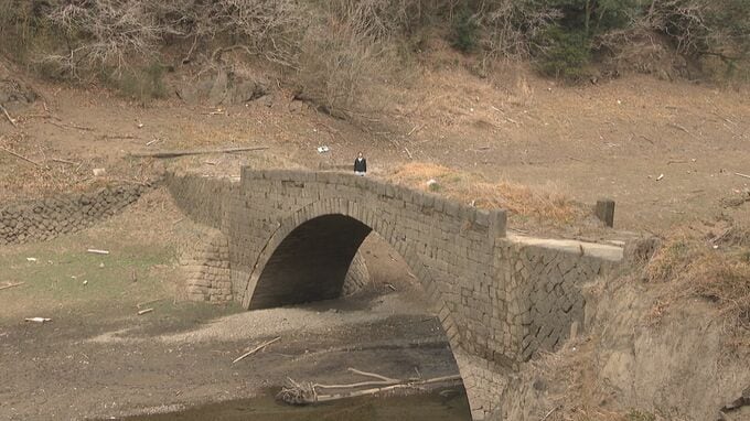 この旧田代橋は例年、渇水期の春から数か月間だけ姿を見せ、「幻のアーチ橋」と呼ばれています。しかし、今シーズンは異例の早さで出現したといいます。