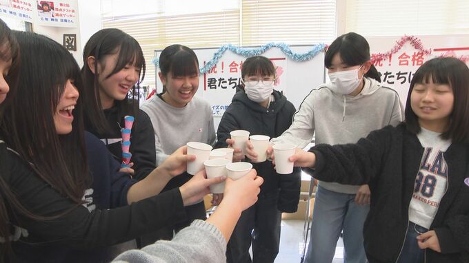 大分市にあるライズ南大分校には、志望校への切符を手にした生徒たちが次々と報告に訪れ、仲間や恩師と喜びを分かち合っていました。