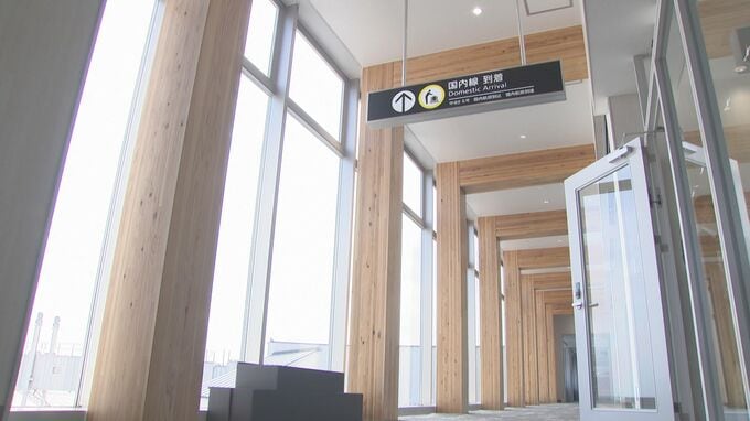 公開されたのは、利用客の利便性向上を目的におととし9月から工事が行われていたターミナルビルの2階です。国内線の搭乗待合室は従来より350平方メートル広くなり、座席数が120席増え、あわせて600席となりました。