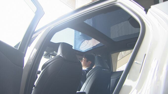 (渡辺キャスター)「新型レクサスに搭載された世界初の技術、天井がボタン一つで黒に変わり、熱や光を遮断します」