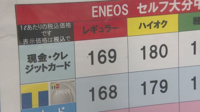 大分県内のレギュラーガソリンは182.9円となり、前の週から8.3円値下がりました。