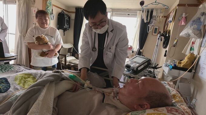 阿部さんは月に2回往診を受けています。医師は命をつなぐ呼吸器などの機器に不具合がないかを細かく確認します。