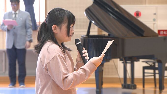 大分市の金池小学校では、12人の教職員が異動と退職で学校を離れます。離任式では児童を代表して5年生の秋吉悠花さんが、感謝の思いを伝えました。