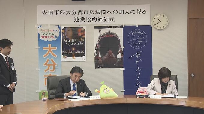 大分市を中心に近隣自治体が連携し、持続的な発展を目指す「大分都市広域圏」に新たに佐伯市が加わり、締結式が行われました。