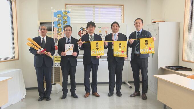 6日は大分市で行われた贈呈式では、登下校時に使用される黄色い横断旗2800本が県交通安全協会に贈られました。
