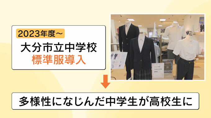 2023年度から大分市などの中学校で、スカートやスラックスを選択できる「標準服」が導入されています。