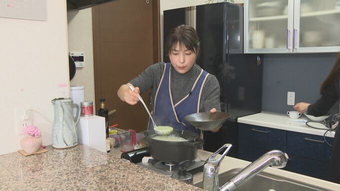 「ブロッコリーはすぐに火が通るので、あとは豆乳や調味料を入れていきます。牛乳でもOKです」