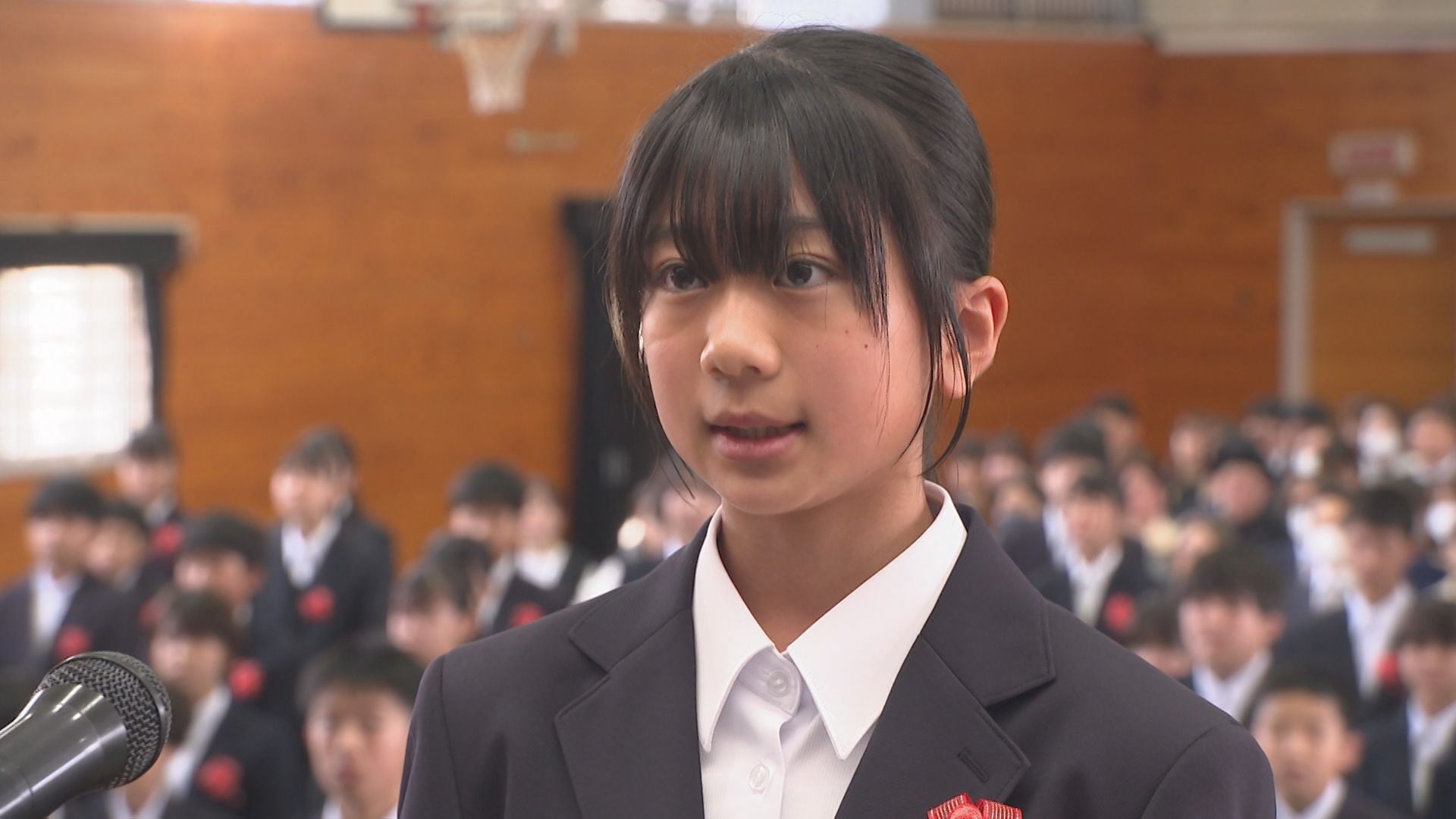 そして新入生を代表し一井菜々美さんが中学校生活に向けた決意を発表しました。