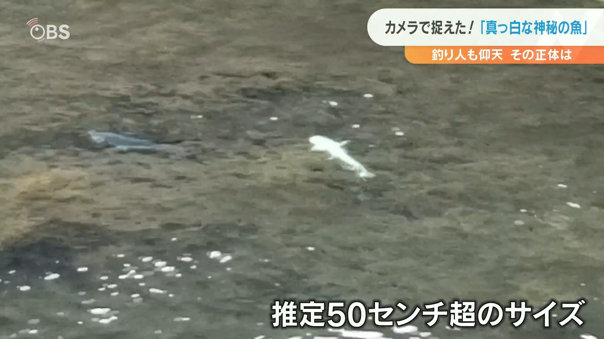 ゆっくりと浅瀬を泳ぐ真っ白な魚影。12月28日、大分県佐伯市米水津の港で釣り人が目撃し、撮影に成功しました。サメやブリのようにも見える生き物の大きさは推定50センチ超え。海中を進む白い姿は神秘的でもあります。