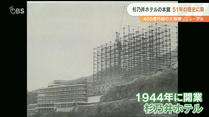 総額400億円を超える大規模リニューアルの一環として、別府温泉 杉乃井ホテルでメインの宿泊棟の本館が16日、51年の歴史に幕を下ろしました。
