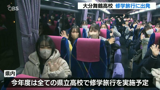 大分舞鶴高校では例年秋に海外への修学旅行を行ってきましたが、コロナ禍で中止や短縮となり、今年度は3年ぶりに5日間の日程で修学旅行が実現しました。2年生およそ280人がクラスごとにバスに乗りこみ北海道へ出発。生徒らはスキーのほか札幌や小樽で自主研修に取り組みます。