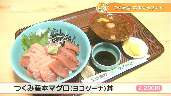 津久見の海で養殖された「豊後まぐろヨコヅーナ」は、身の締まった赤身ときめ細かで脂の乗った大トロが特徴です。津久見市では2月から「つくみ産本まぐろ~ヨコヅーナ~フェア」が開催。市内6つの飲食店でヨコヅーナの丼ぶりや定食が手頃な価格で食べられます。
