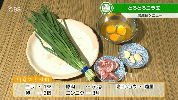 シャキシャキ感がたまらない大分県産のニラを使った「とろとろニラ玉」。シンプルな材料であっという間にできるおすすめメニューです。