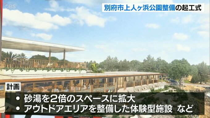 大分県別府市の上人ヶ浜公園で砂湯を中心とした大型複合施設の整備に向けて、10日現地で起工式が行われました。
