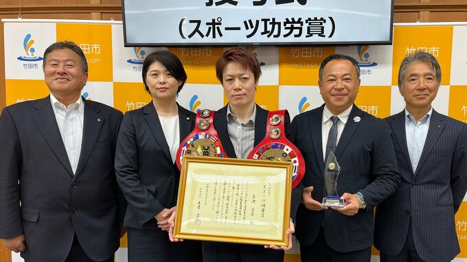 女性プロボクサー菊池真琴選手 スポーツ功労賞授与 「バンタム級・スーパーバンタム級」2階級制覇 大分 2023年6月19日(月) 16:42 国内 大分県竹田市出身のプロボクサー菊池真琴選手に市からスポーツ功労賞が贈られました。19日、竹田市役所を訪れたのは、地元出身のプロボクサー・菊池真琴選手です。菊池選手は6月4日、東京で行われたOPBF東洋太平洋…