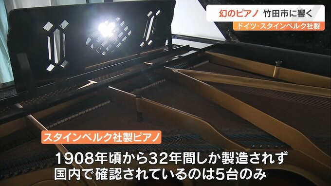 幻のピアノとされるドイツ・スタインベルク社製のグランドピアノが大分県竹田市内の音楽ホールに寄贈され、100年前の音色がお披露目されました。
