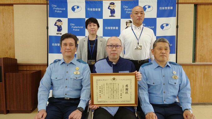 感謝状が贈られたのは大分県玖珠町にあるローソン玖珠長野店の上田祐樹店長です。上田さんの勤務する店に6月20日、60代の男性がパソコン修理名目で要求された8万円分の電子マネーを購入するために訪れました。上田さんは高額の電子マネーを購入する男性を不審に思って声をかけ、被害を未然に防ぎました。特殊詐欺被害を防ぎ、上田さんに感謝状が贈られたのは2回目です。