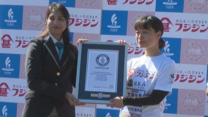 ゴールに用意されたザルに入ったそうめんはおよそ60グラムで、ギネス認定条件を大きくクリアしました。そして…