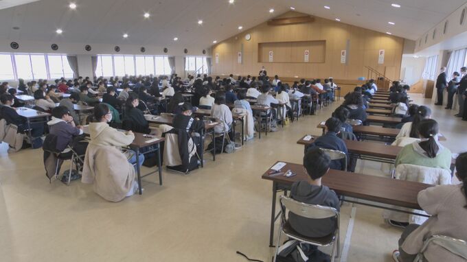 大分市内にある私立の向陽中学校で入学試験が行われ、受験者が緊張した面持ちで問題に挑みました。