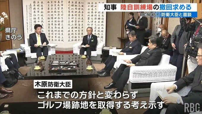 17日沖縄県庁を訪れた木原防衛大臣は、玉城知事と面談し、これまでの方針と変わらずゴルフ場跡地を取得する考えを示しました。