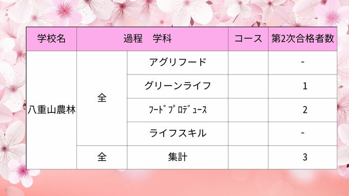 北部農林・中部農林・南部農林・宮古総合実業・八重山農林