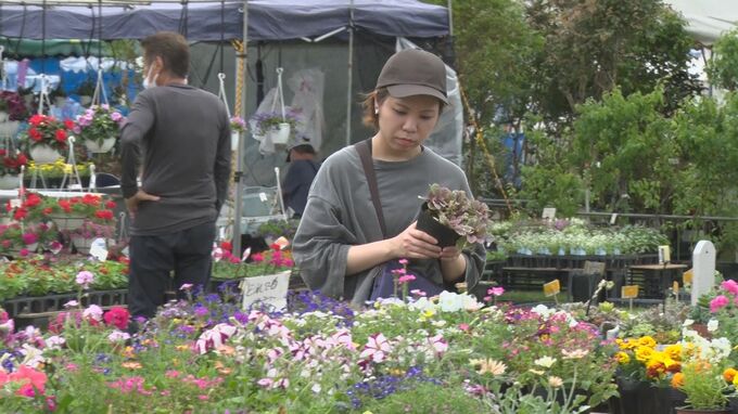 花を楽しみながら生活空間に緑を取り入れてもらおうと、花卉園芸業者らでつくる中部広域グリーンフェスタ推進協議会などが毎年開いている「グリーンフェスタ」。40回目の今年は中部地区のおよそ20の園芸業者が出店していて、果樹の苗木や造園用の庭木、鉢植えの花などを市場価格よりも安く販売しています。