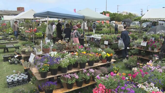 観葉植物や果樹の苗木などを市場価格よりも安く展示即売する恒例のグリーンフェスタが沖縄市で開かれています。