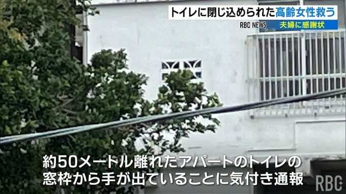 先月5日午前9時ごろ、美樹さんが自宅のベランダで洗濯物を干していたところ「助けて」という女性の声が聞こえ、50メートルほど離れたアパートのトイレの窓枠から、手が出ていることに気づき警察に通報しました。