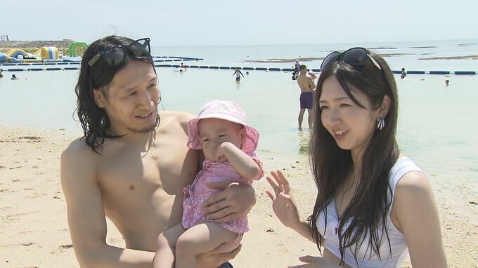 ビーチでは、ゴールデンウイークで沖縄を訪れている観光客や地元の人たちが、すでに夏本番の海を楽しみました。