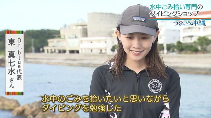 奈良県出身の東さん。スキューバダイビングで沖縄の海に魅了され、きれいな海を守りたいと、水中ごみ拾い専門のダイビングショップをオープンした。