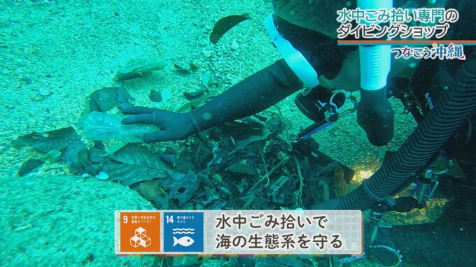 ダイビングの新しい楽しみ方としてリピーターも増えていて、回収したごみを活用してアクセサリーをつくるコースなど、誰でも楽しくごみ拾いに参加できる。きれいな海を守るこの活動は、海の生態系の保全を目指すSDGsの目標につながっている。