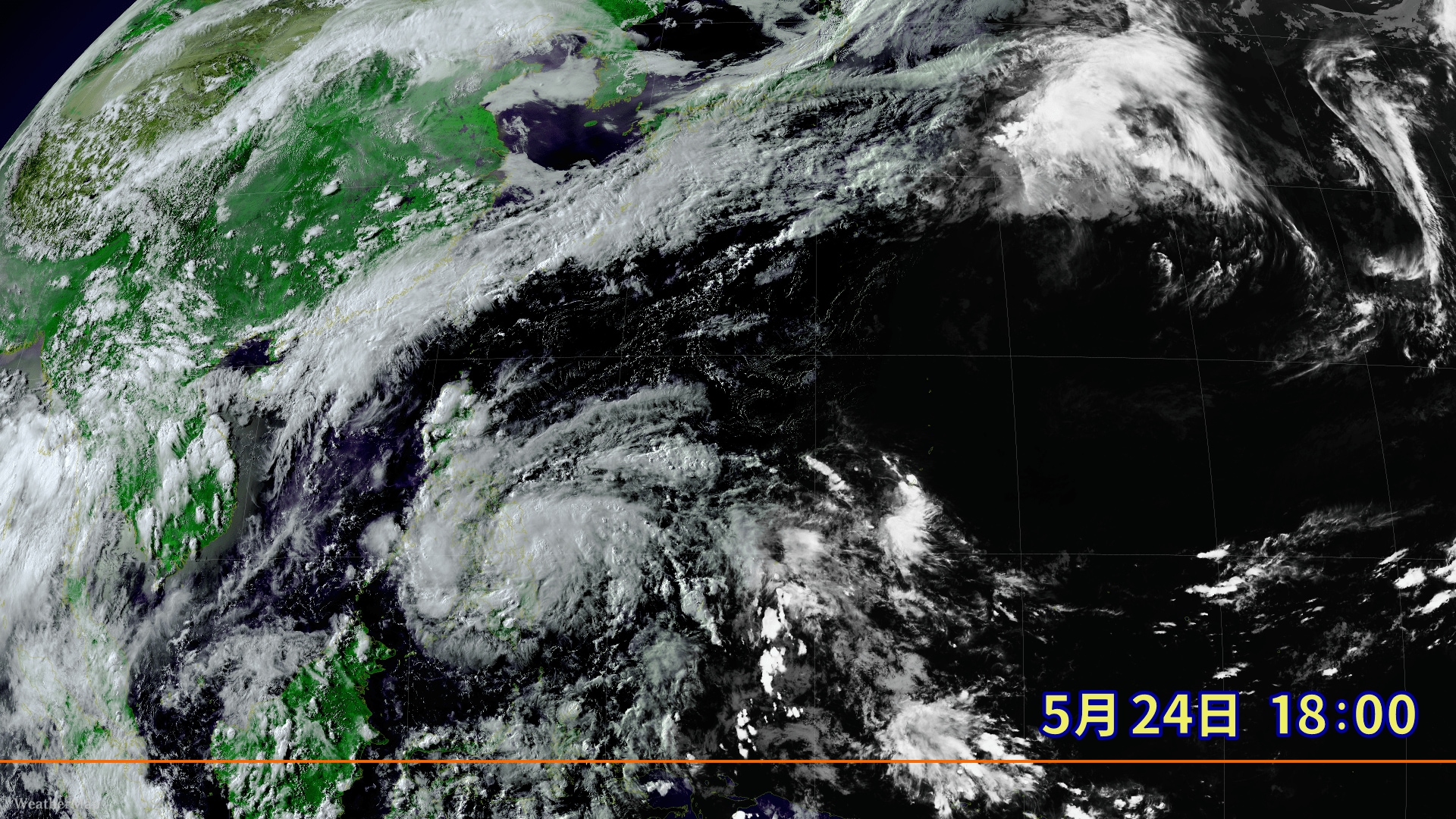 沖縄のはるか南の海上で熱帯低気圧に伴う雲のまとまりがみられます。23日よりも雲がまとまってきていて、少しずつ発達している様子がわかります。