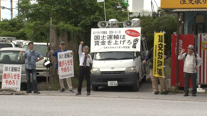 終日ストライキを行ったのは普天間基地の辺野古移設にともなう土砂運搬作業を行っている会社「国士運輸」のダンプカー運転手らで結成された労働組合「うまんちゅユニオン司支部」の組合員12人です。