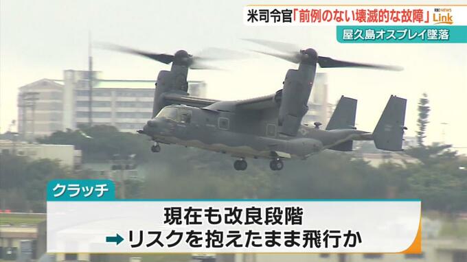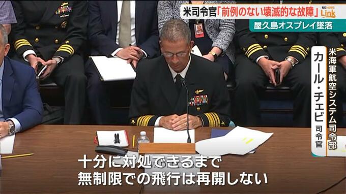また、屋久島沖でのオスプレイ墜落の原因となった「クラッチ」と呼ばれる部品の安全性にはまだ懸念が残るとして「全面的な飛行再開は2025年の中頃以降になる」と述べました。