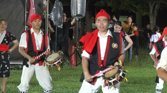 このうち松本青年会のエイサーはスピード感のある大太鼓やキレのある締太鼓などで構成され、スピーディーで勢いがある演舞が特徴で、会場を埋め尽くした観客を魅了していました。