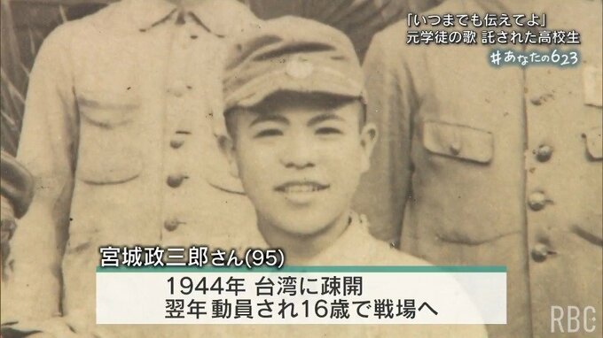 宮城政三郎さんは、与那国島から県立第一中学校(現首里高校)に入学した。1944年、両親のいた台湾に疎開したが、翌年には日本軍に動員され16歳で戦場に駆り出された。