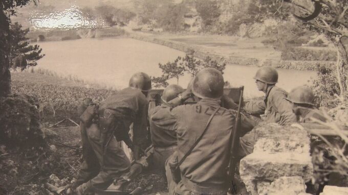 市内での戦闘状況を記録した写真では、普天間付近を嘉数に向かって進攻していく米兵や、宇地泊から日本軍の砲座を狙う米軍の姿が捉えられています。