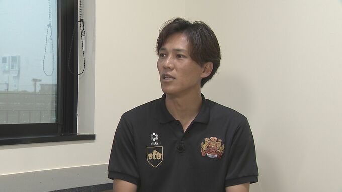 西原町出身の元Jリーガー上原慎也さん。元FWの目線で見て、今季前半の琉球の攻めの形は非常に良かったと評価します。