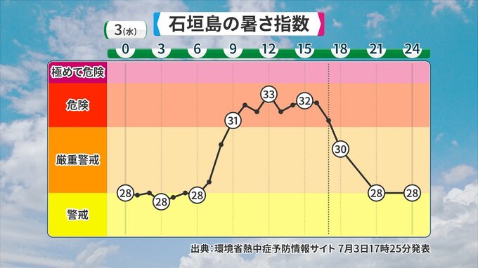 体に堪える暑さが続きますので、夏バテしないよういつも以上に体調管理にお気を付けください。あすの【暑さ指数】は危険水域に達する予想が出ています。(予想グラフが表示されない方は画像ページ・またはオリジナルサイトでご覧ください)
