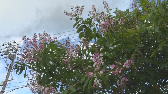 うるま市宇堅の住宅の庭で開花したのはインドや東南アジアなどの熱帯地域が原産のミソハギ科の落葉樹、「オオバナサルスベリ」です。