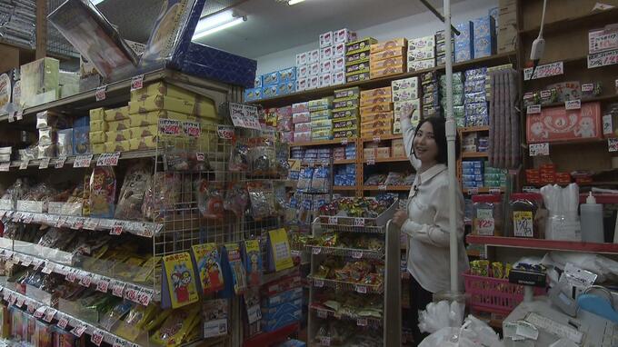 およそ1000種類の商品が並ぶ、お菓子のデパート「上間商事」。地元では「おきこや~」の愛称で親しまれる駄菓子屋です。