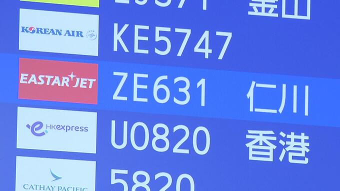 新型コロナウイルスの影響で那覇との定期便を中止していた韓国の格安航空会社「イースター航空」が19日、約4年半ぶりに運航を再開し那覇空港は韓国からの観光客で賑わいました。