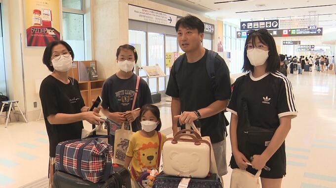 ▽家族連れ 「久しぶりに家族旅行で色々探してみたら沖縄ちょうどいいかなと思って」「学校、1日休んで。ちょっと早め、混む前に」