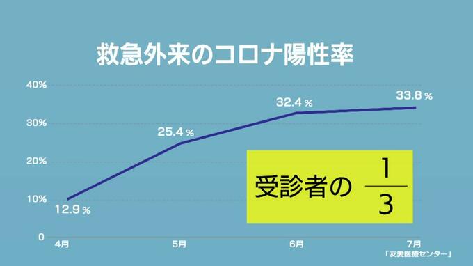 熱中症を含め、救急外来を受診後に、コロナと判明した人の割合は、全体の3分の1に上る。