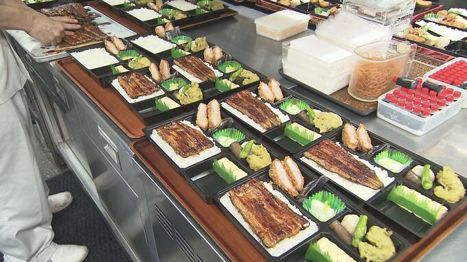 那覇市のウナギ料理店では朝10時から仕込みが始まり、通常の10倍となる500食を用意しました。