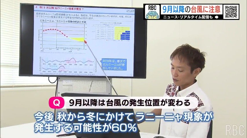 「今後、秋から冬にかけてラニーニャ現象が発生する可能性が60%と高まると予想されています」