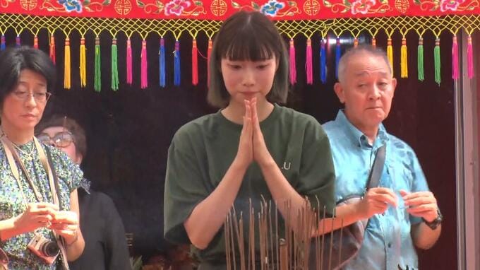 石垣島は台湾からの移住者が多く、この神事は最初の移住者によって戦前から行われているということで、ことしは台湾からの親族なども参加して熱心に祈りを捧げていました。