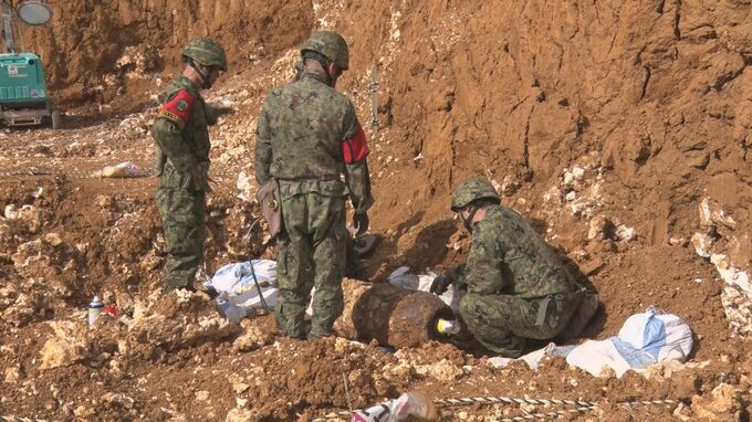 不発弾は、陸上自衛隊の不発弾処理部隊によって処理壕とよばれる深さ6メートルの穴に移されたあと、手作業で信管を取り外す方法で処理されました。