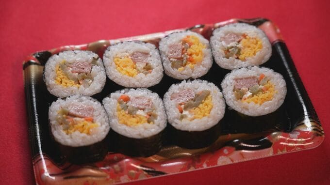 シャリには酢を使用せず、チャンプルーの味付けにも使われる沖縄そば出汁を加えました。ほんのり感じる沖縄そばの風味が、ほどよいアクセントに。