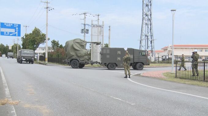 午前10時前、港から出ようとする車両の前には、新たな部隊の発足に市民らが座り込んで抗議しましたが、警察が一人一人を進路上から排除し、トラックは車列を組んで宮古島駐屯地に向かいました。